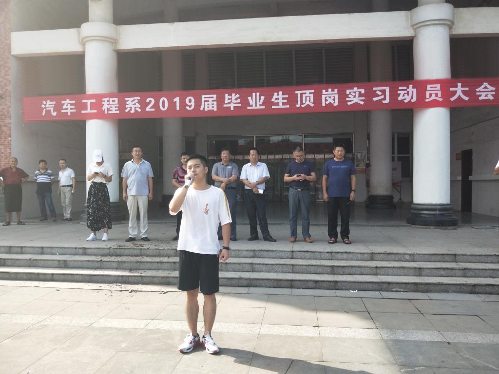 为进一步做好毕业生顶岗实习工作,给学生提供更好认识和适应社会的平台,使学生更快提升岗位技能、提高职业素养,成功迈向社会,汽车系组织100余名即将毕业学生开展顶岗实习活动。9月3日上午,汽车工程系在学院西门隆重召开了2019年毕业生顶岗实习动员大会。汽车工程系副主任张信群、副书记陈兴友以及五家企业代表出席动员大会,会议由张信群主持。
