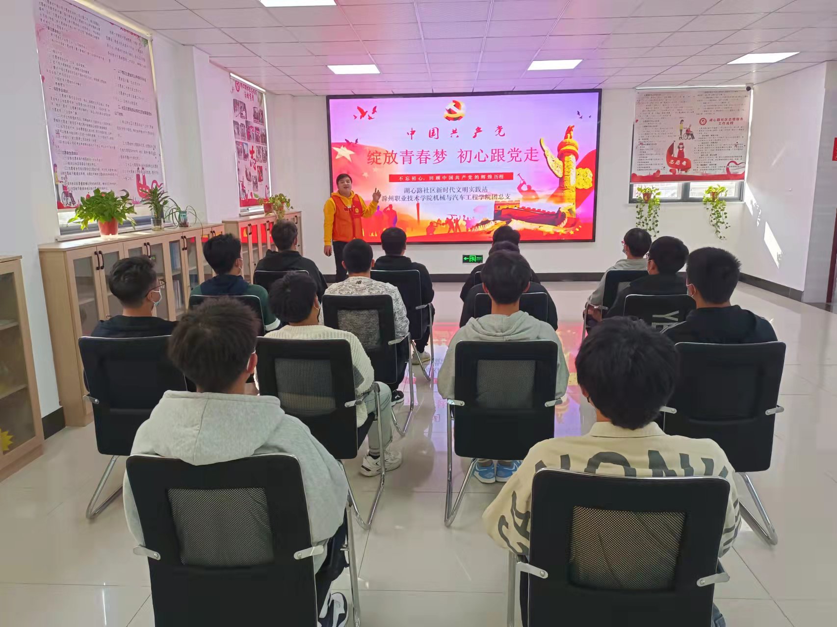 为庆祝中国共产党成立100周年,推进党史学习教育多元丰富化,金沙威尼斯欢乐娱人城机械与汽车工程学院团总支组织学生团干部进湖心路社区开展“绽放青春梦、初心跟党走”党史学习教育。