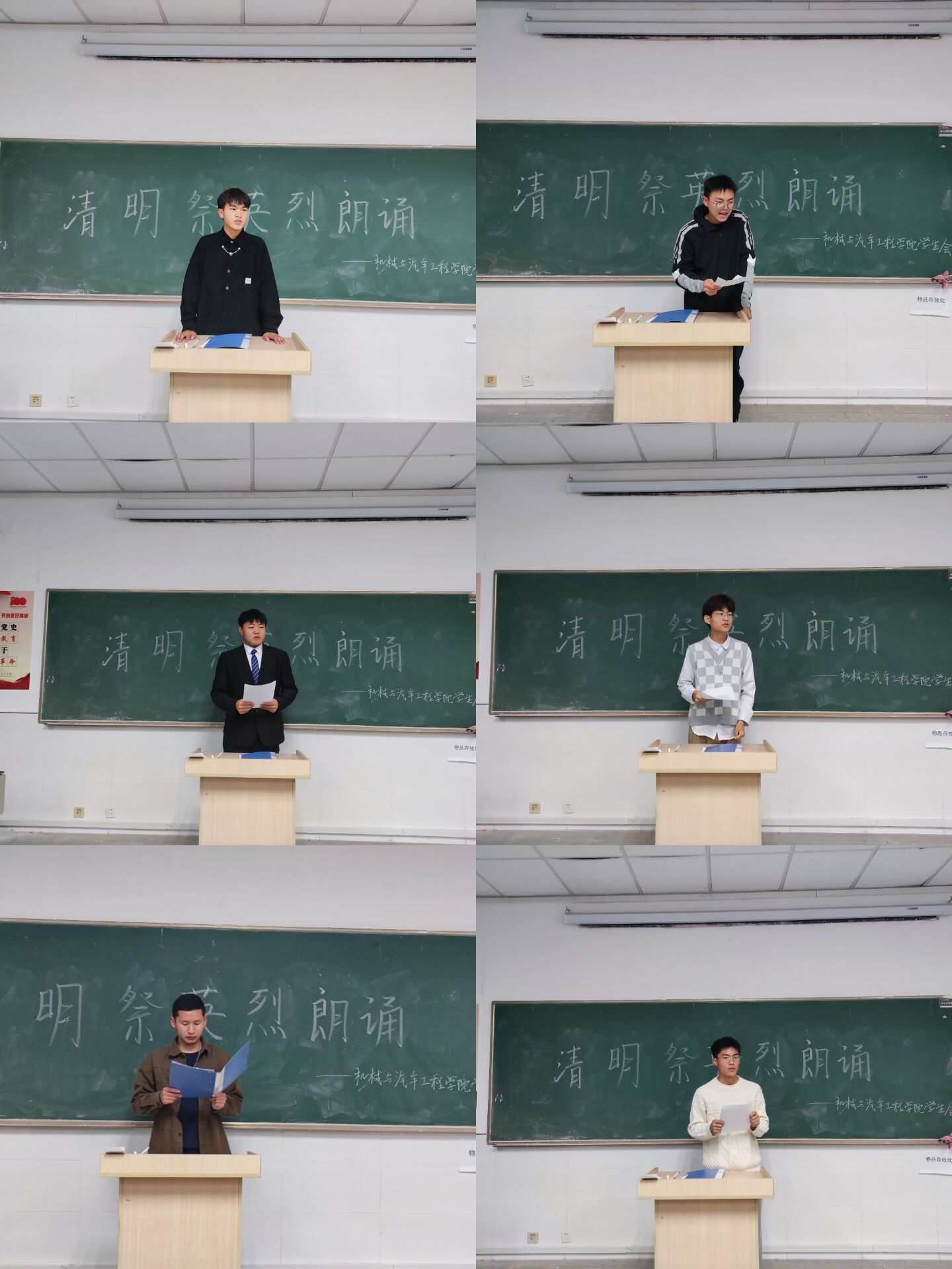 2022年4月4日晚7点,机械与汽车工程学院学生会于5号教学楼5106教室开展“清明祭英烈朗诵”比赛。比赛由学生会权益部部长窦宇主持,评委由学生会主席团张滨川、徐磊及三名团学干共同担任。