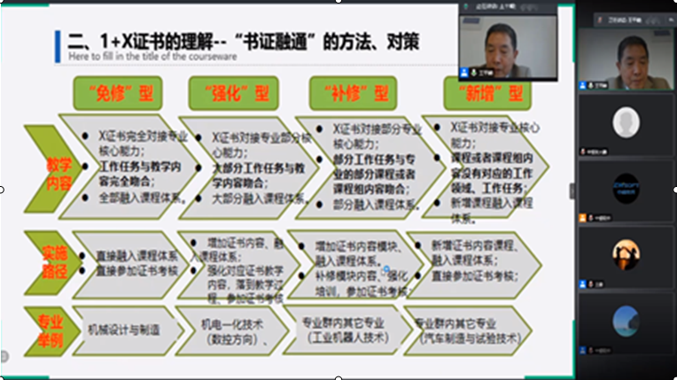 本次培训主要采取线上形式,经过4天紧张有序的理论学习和操作技能训练,主要学习了机械产品三维设计等级证书标准解读、学习了安徽机电学院、温州职业技术学院两个优秀试点院校证书考评经验分享,岗课赛证实施路径探讨,信息化教学分享以及证书技能实训操训等问题,在学习新技术和技能的同时,也实际感受了多种教学方法在新技术教学中的应用,以及理实一体化教学组织安排等,并与国内兄弟院校和行业企业就1+X技能等级证书方面工作进行了深入地交流。