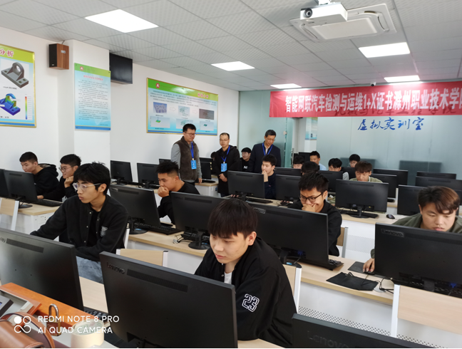 本次考试共2小时,考核的内容包含了智能网联汽车相关理论知识和实操两部分。借考证为契机,为全面培养合格人才,在考试前采取组织学生进行线下集中授课,线上个别答疑的方式对学生进行考前辅导。为保证考试顺利进行,在正式考试前,利用课余时间组织学生对考试设备进行测试,使学生熟悉考试流程,进一步磨合监考教师与考核机构的沟通能力。