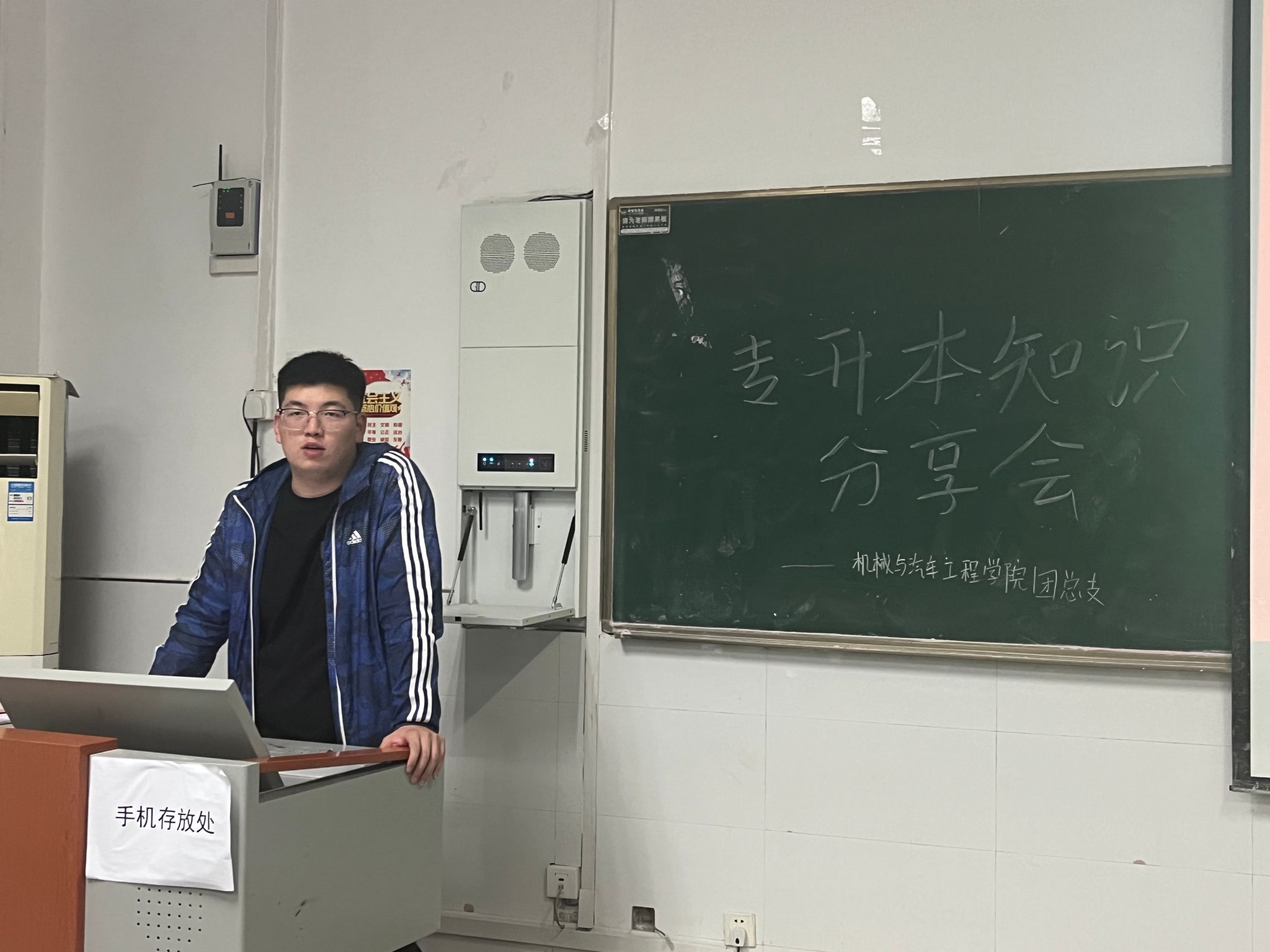 为帮助我院学子全面了解专升本考试,及时把握学历提升的机会,搭建专升本考试交流平台,协助我院学子树立正确的升学观、就业观。机械与汽车工程学院团总支于5月23日晚七点在5113教室开展“专升本知识”分享会,我院100余名同学参加了此次分享会。分享人王鑫同学以534分的好成绩被安徽工业大学新能源科学与工程专业录取。