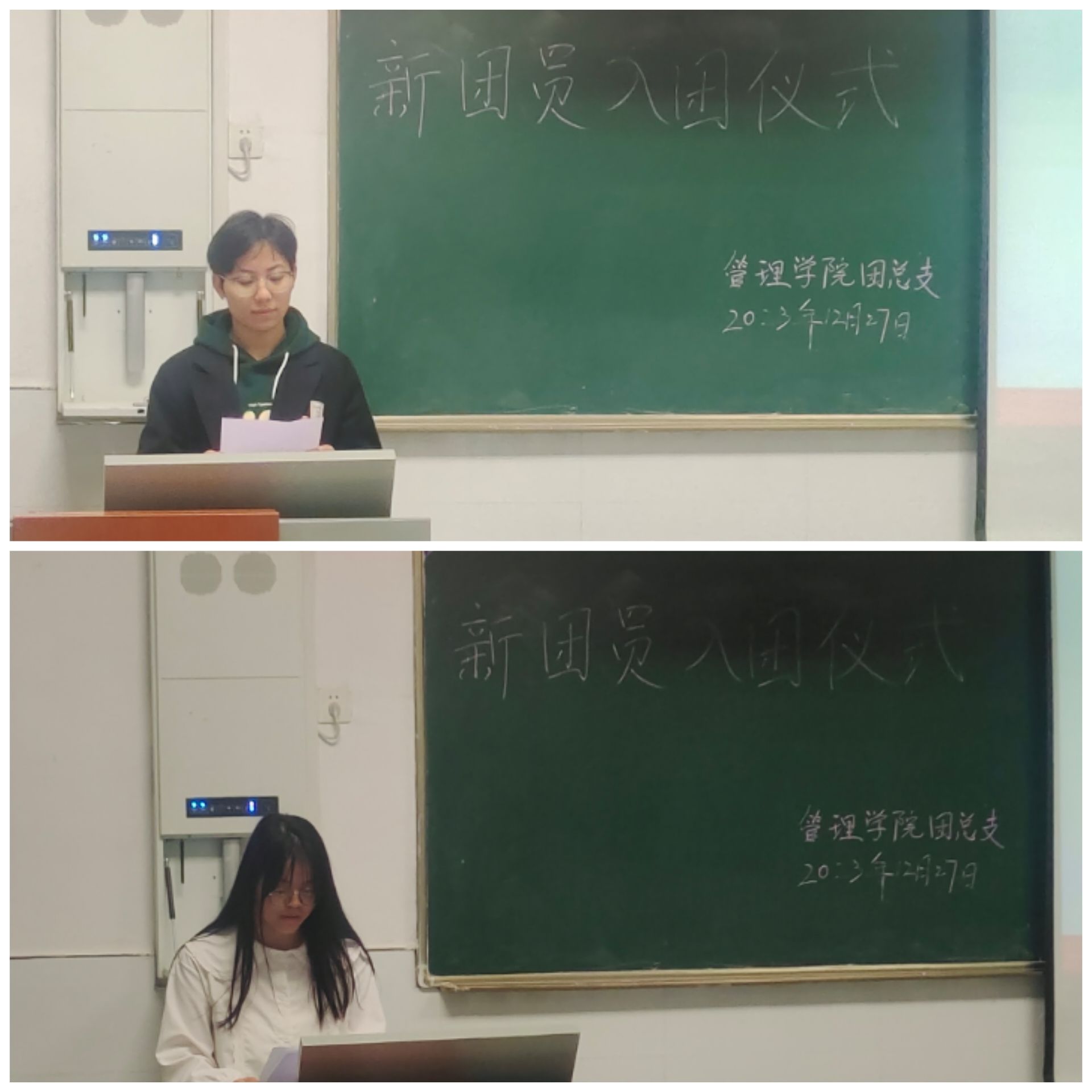 为深入学习贯彻党的二十大精神,引领广大团员永远跟党走、共筑中国梦,切实增强团员的光荣感和使命感以及团组织凝聚力。12月27日,管理学院团总支于1102教室开展新发展团员入团仪式。