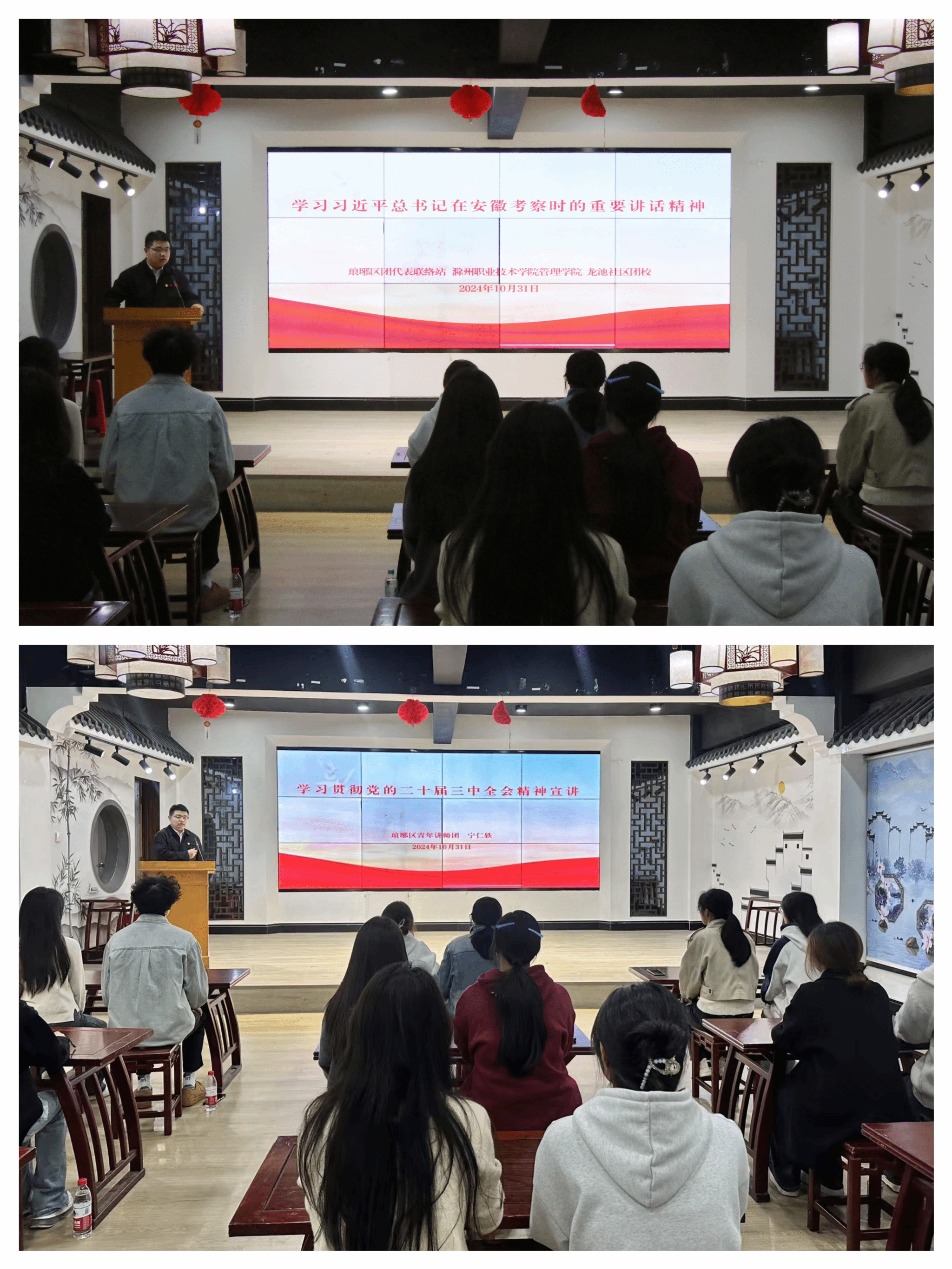 活动伊始,同学们倾听了琅琊区青年讲师宁仁轶的宣讲。从学习贯彻党的二十届三中全会精神和习近平总书记考察安徽时的重要讲话精神两个方面去学习,讲师详细解读了党的二十届三中全会提出的各项政策和改革措施,以及习近平总书记对安徽发展的殷切期望。通过这次宣讲,同学们更加明确了自身的责任。大家表示,将努力学习,不断提高自己的综合素质,为实现中华民族伟大复兴的中国梦贡献青春力量。随后,在负责人的带领下,同学们踏入街道的集体企业,深入探索新媒体产业的独特魅力。同学们看到了新媒体产业如何运用创新的思维和先进的技术,为信息传播和文化发展注入新的活力。同学们积极与工作人员交流,提出自己的疑问和见解,收获了丰富的实践知识。