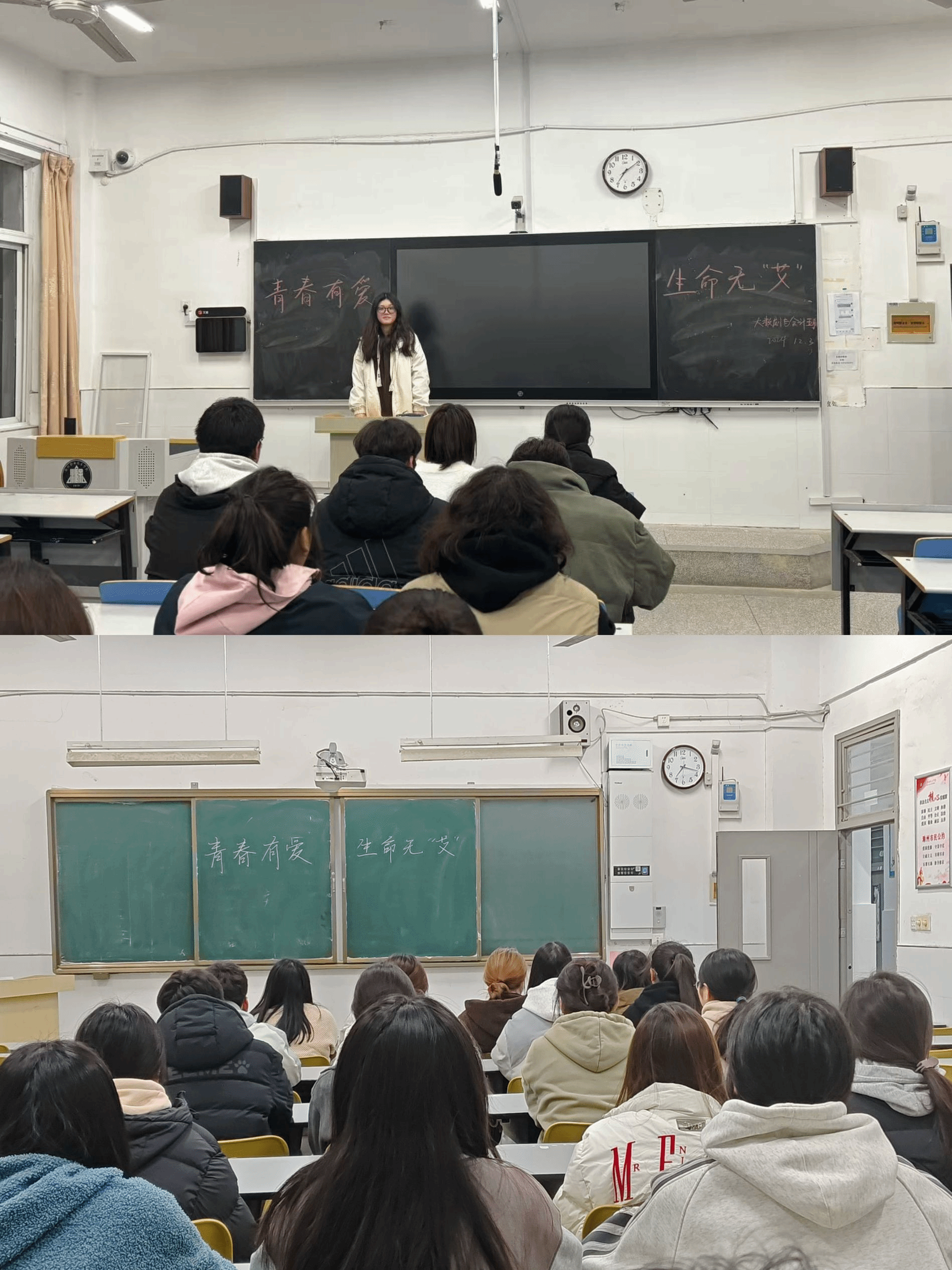 此次班会聚焦艾滋病防治知识普及,由班委向同学们详细讲解了艾滋病的基本概念、传播途径与预防措施,提升了同学们对艾滋病危害的认知,同时也让大家深入了解在日常生活中与艾滋病患者相处及自我防范的要点。