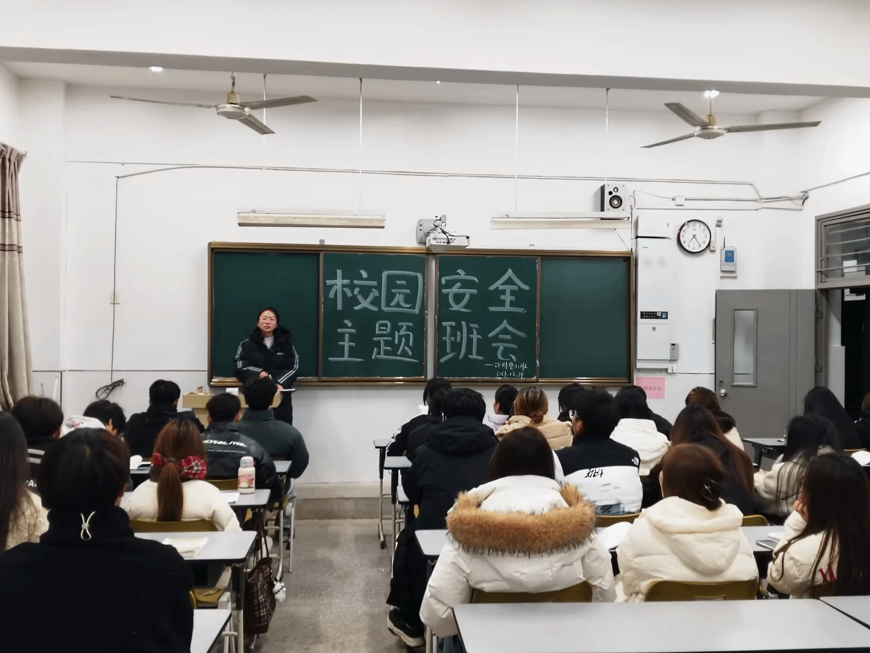班会中,各班辅导员着重强调,所有同学均应明确自身在维护校园安全中所肩负的责任与义务,并且要积极主动地参与到校园安全防护工作之中。同时,辅导员们还表示将会持续排查各项安全隐患。
