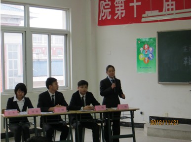 11月21日下午在5405教室我院第十二届大专辩论赛拉开了帷幕,我系首场对阵生化系。在经过正方慷慨激昂、反方充满理性色彩的介绍后,比赛便进入了立论环节。正方我系紧扣主题,用简洁易懂的语言陈诉己方“革新技术更重要”的观点。反方也有理有据层层剖析己方“革新思想更重要”。在随后的攻辩环节双方更是针锋相对,步步紧逼,现场气氛迅速升温,达到白热化阶段。大赛继续进行着,在经过之后的自由辩论与陈词总结后我系选手最终凭借着出色的表现略胜一筹,取得了首场的胜利。