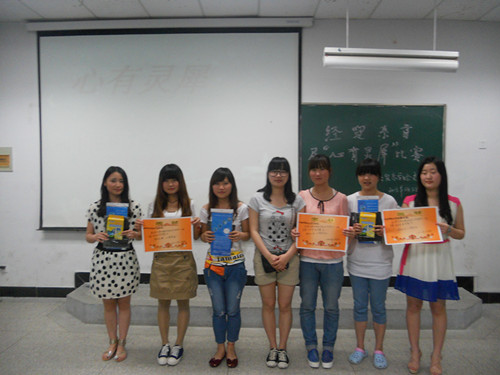 参加本次活动的选手分别来自经贸系各班。活动中,同学们积极踊跃。经过激烈而紧张的比赛徐琦睿、王改凤获得第一名。程欢欢、江文秀;李维娜、吴芹两组则并列获得大赛第二名。王玉莹、李梦, 彭学峰、滕学宣,徐永洁、 李丽炜分别获得第三名。