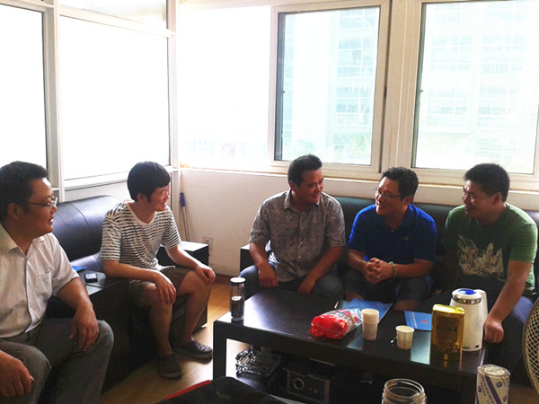 2013年8月15号上午8点半,经贸系副书记陈开兵与经贸系副主任宋君远及教学秘书程震三人一行赴滁州诏和商务有限公司与滁州华晨科技软件公司看望慰问暑假下企业锻炼的宋凤柱、赵进、王飞、张泉、张帅老师。