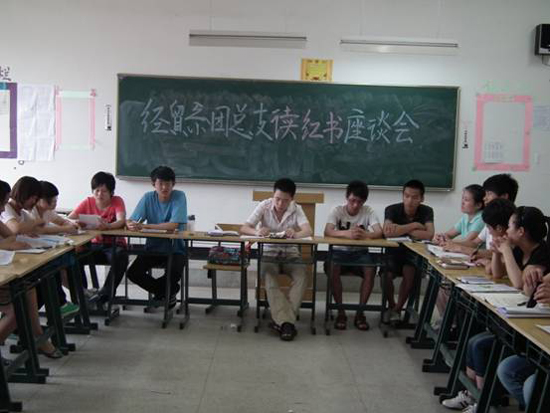 为庆祝建党90周年,经贸系团总支于5月10日下午举行了“读一本红书”座谈会活动。经贸系团总支书记何堃和经贸系各班级团支书参加了此次活动。座谈会上,大家积极踊跃发言,共同讨论了《青春之歌》和《红岩》两本红书。学习主人公无私奉献的革命精神和战斗到底的革命意志。