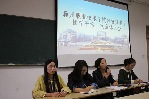 为提高新一届团学干的责任意识并激发工作热情,2017年10月11日下午13:30,经济贸易系在南阶103教室召开“经济贸易系新学期团学干第一次全体大会。”本次会议由经贸系团总支书记何文婧老师主持,团总支、学生会全体成员参加此次会议。