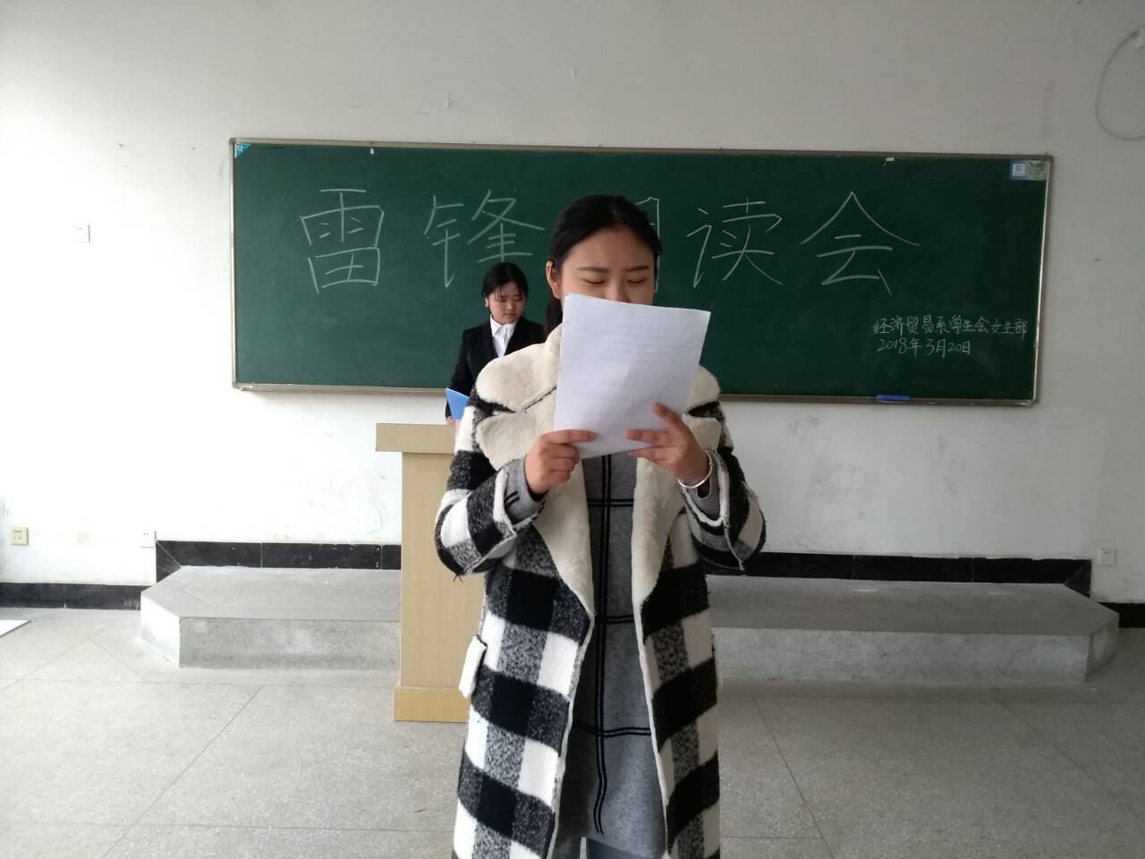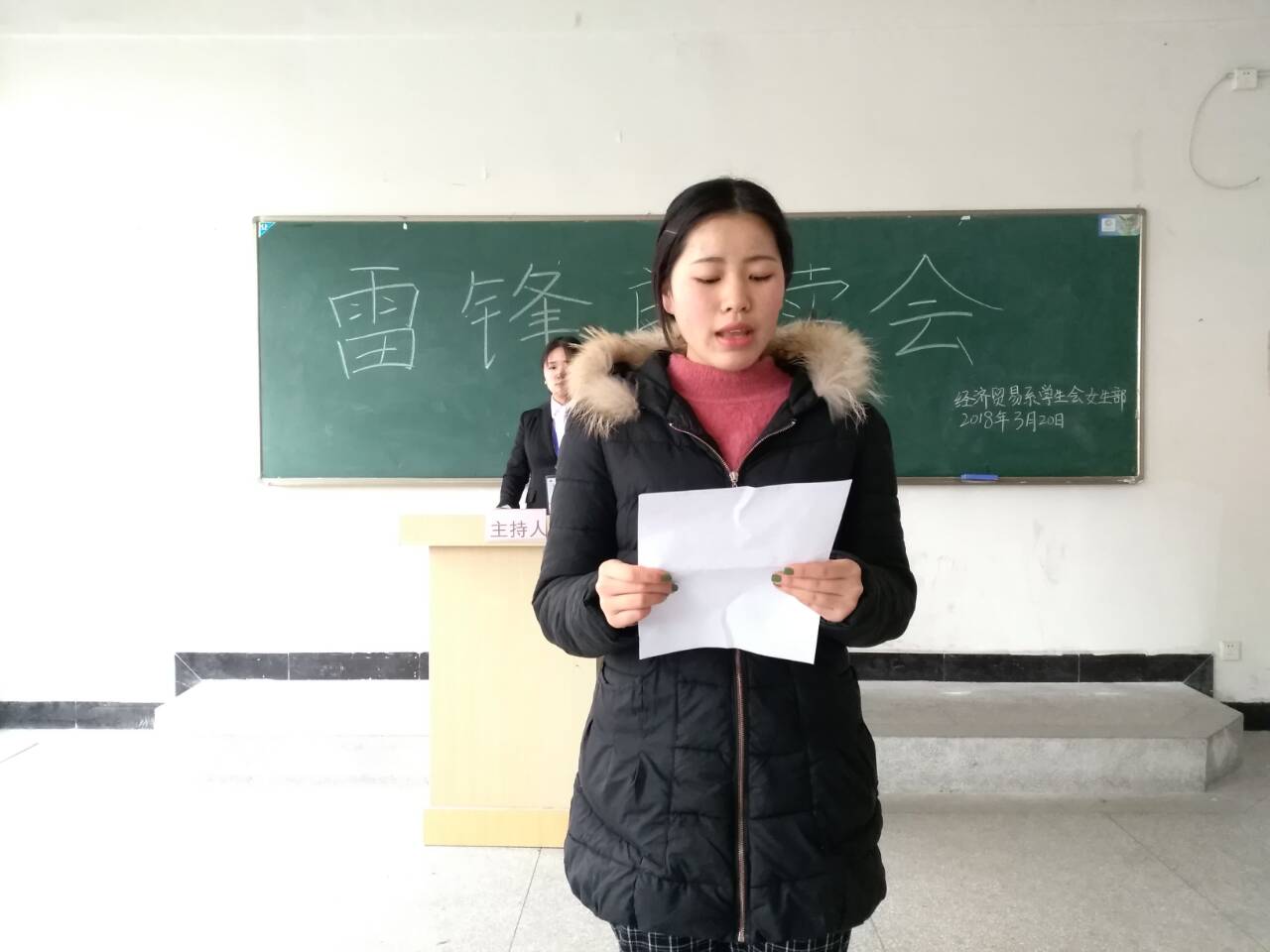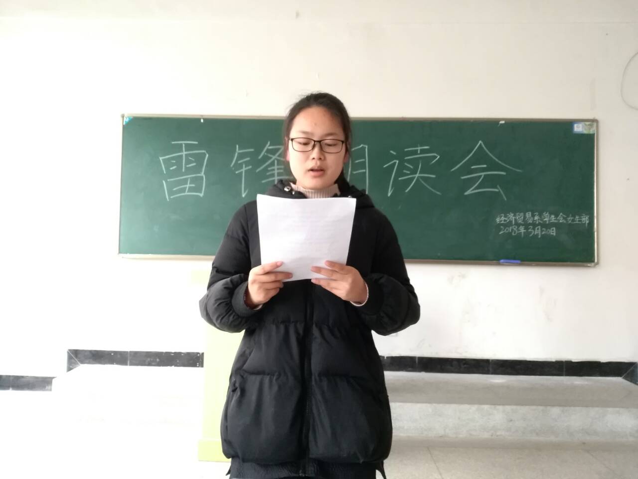 雷锋精神是中华民族宝贵的精神财富,它激励着一代又一代的青少年健康成长,促进了社会文明的进步,社会风气的好转。为了弘扬和学习雷锋精神,金沙威尼斯欢乐娱人城经济贸易系学生会女生部于3月20日中午在1323教室举办“雷锋朗读会”比赛活动。出席本次活动的评委有:经济贸易系学生会办公室主任王梦如、学生会学习部部长张梦楠、学生会女生部部长曹嫚嫚。