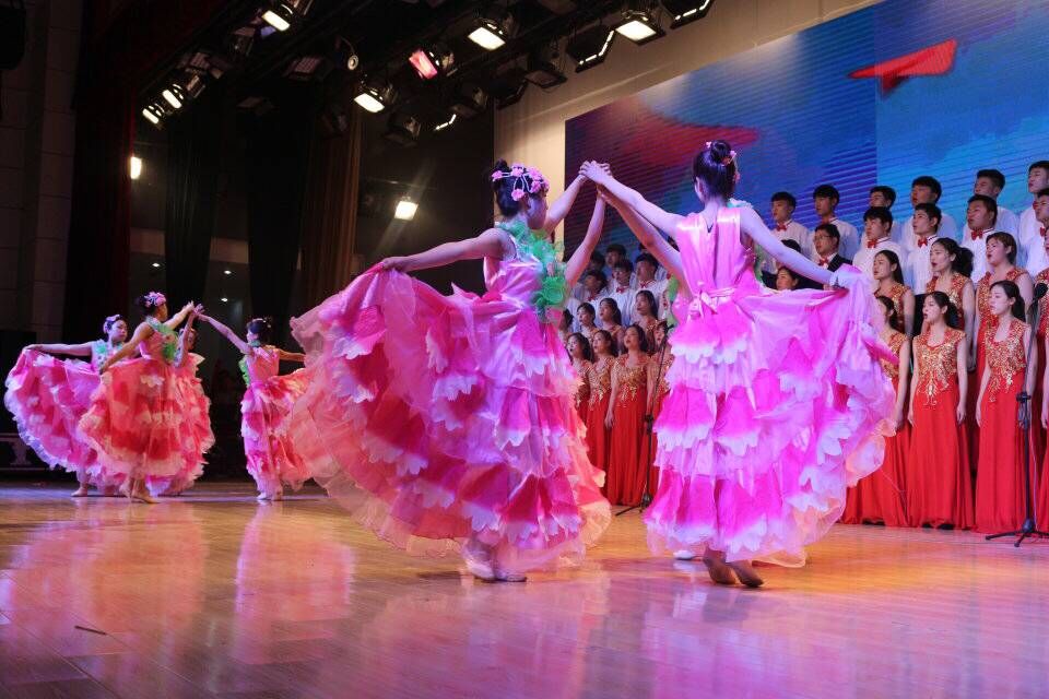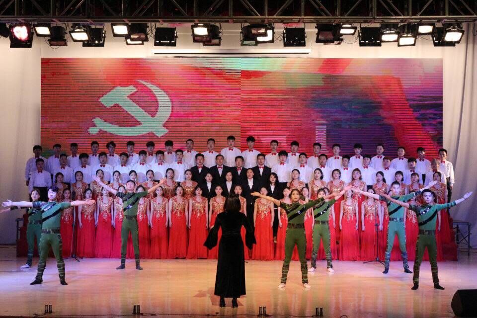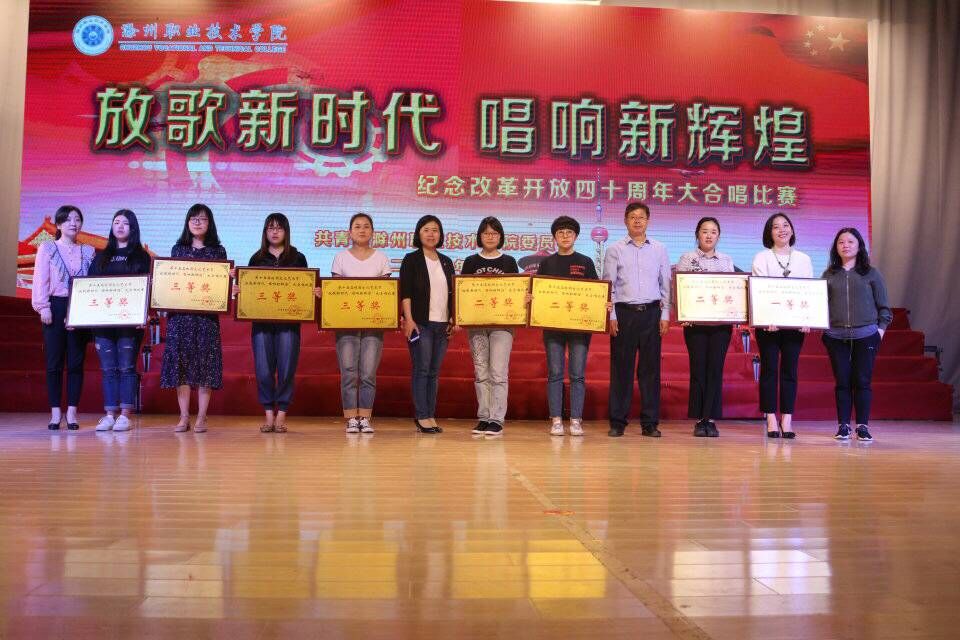 最后由我系党总支书记李有志和主任翁嘉晨带领80名师生共同演唱了《我的中国梦》和《迎风飘扬的旗》,由团总支书记何文婧老师担任指挥手。我系同学们利用课余时间精心准备,积极练唱,展现了经贸系同学们爱国爱校、朝气蓬勃、昂扬向上的精神面貌。精心编排的造型,大气磅礴的歌声加上优美的舞蹈,歌颂了中华民族自强不息的伟大精神、阔步向前的豪迈气概,唱出了新时代青年对党和祖国的浓厚深情和热情讴歌。歌声催人奋进,气势振奋人心。我系师生不负众望,在此次大合唱比赛中荣获一等奖的好成绩。