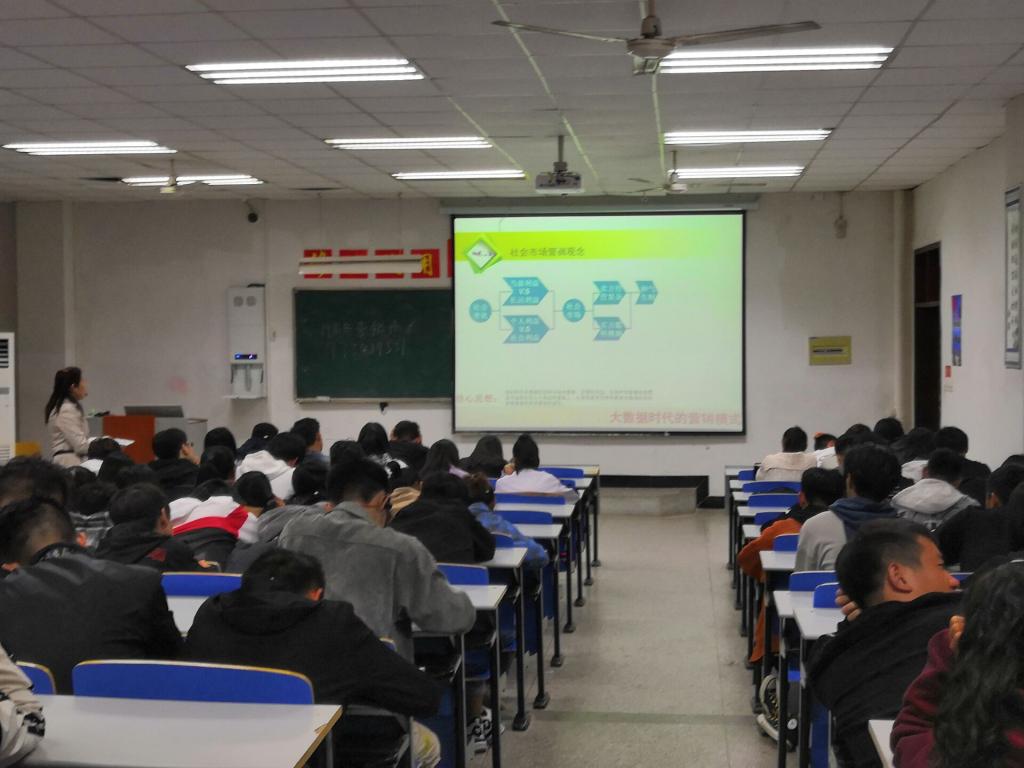 2019年10月16日,商学院赵荣副教授在致真楼1102教室举办主题为《大数据时代的营销模式》的学术讲座。本次学术讲座由商学院营销外贸系市场营销教研室主办,市场营销协会协办。市场营销协会成员及18级、19级市场营销,18级电子商务共140余名同学参加了本次学术讲座。