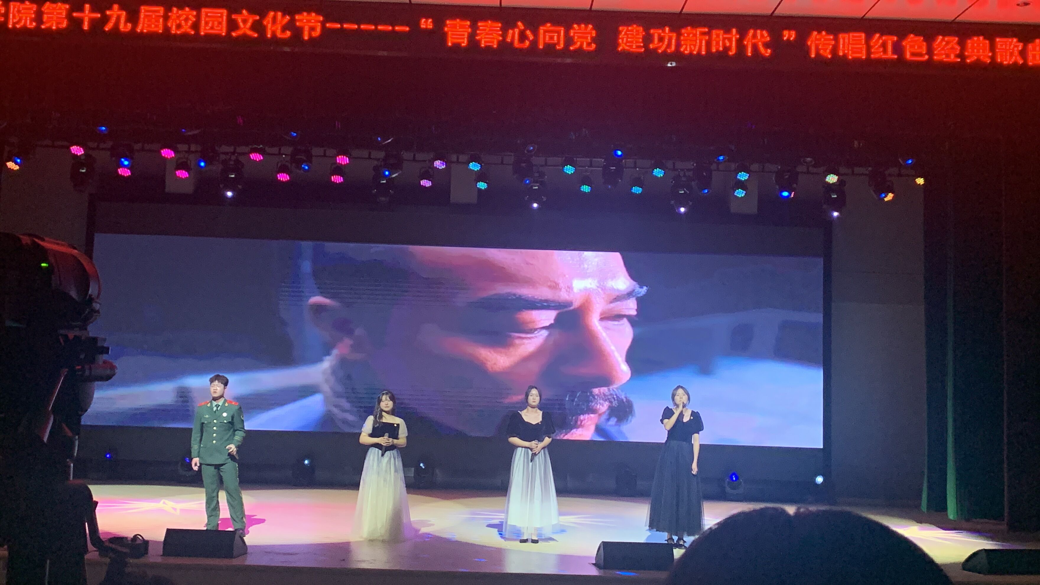5月23日晚19:00,金沙威尼斯官网第十九届校文化节校园“青春心向党,建功新时代”红歌比赛在在校园大礼堂隆重举行。全校共组建的13支学生队伍参加比赛,300余名师生现场观看比赛。