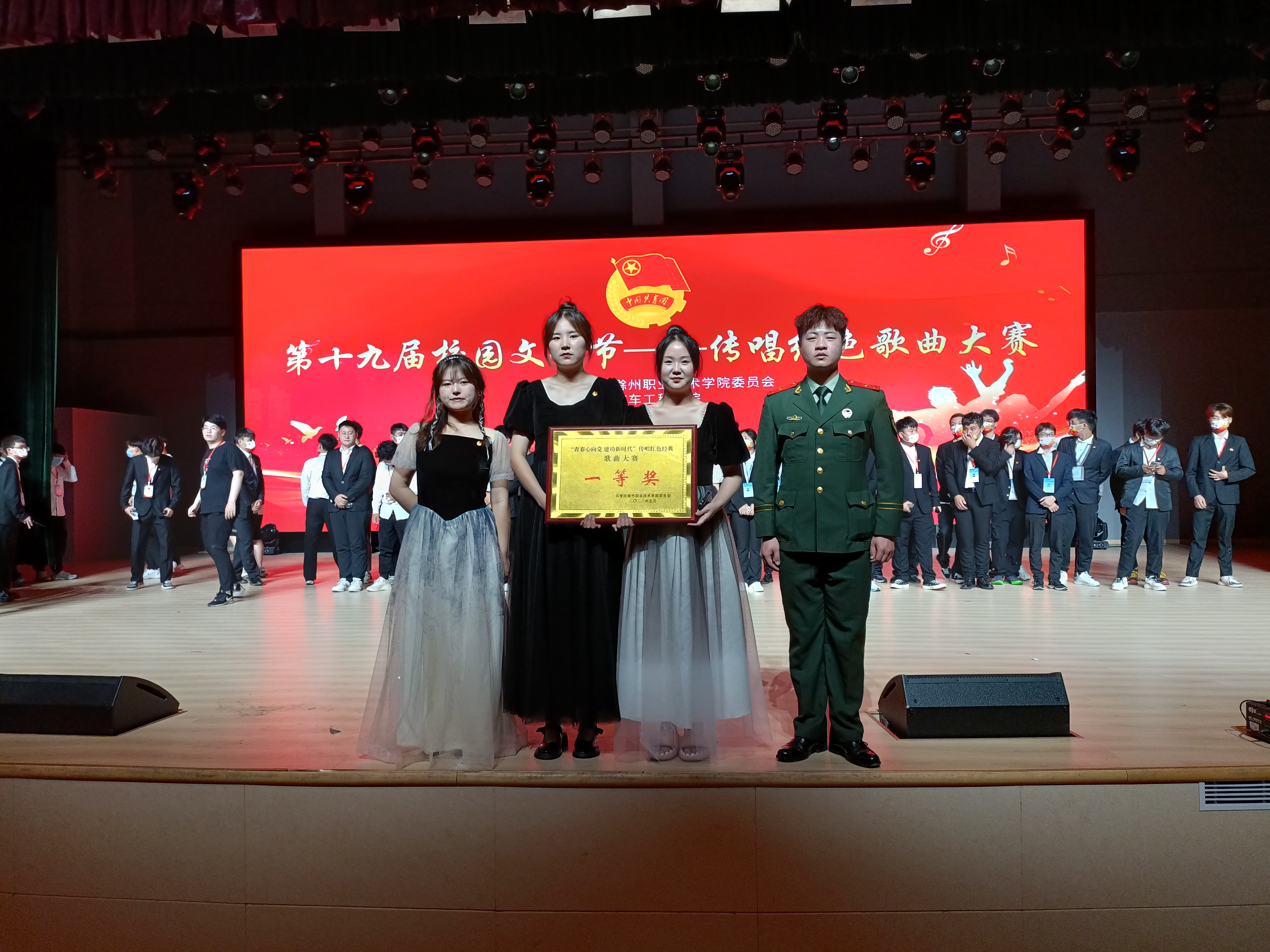 本次比赛,共有13支队伍站上了今晚的舞台进行同台竞争。今晚,歌声从这里传出,一首首经典红歌响彻学校,一曲曲熟悉的旋律激情澎湃。主持人宣布比赛开始后,一支支轮队伍流上台演唱,评委们听得认真,选手们唱得响亮,场面异常火爆。每位选手都站上了这个展现自我的大舞台,充分展现了金沙威尼斯官网青年学子奋发向上的激情活力和赤诚真挚的爱国情怀。一首首经典红歌唱响了中国革命精神的坚韧不屈和对美好未来的无限憧憬。整场比赛高潮迭起,精彩纷呈,表演队伍着装整齐、精神饱满,气势磅礴的合唱一次次将比赛推向高潮,赢得了评委和观众的热烈掌声。经过激烈角逐,我院压轴上场,以一首《国际歌》斩获本次红歌比赛第一名。最后,各位评委共同为本次获奖队伍颁奖,并与选手们一同合影留念。至此,金沙威尼斯官网第十九届校园文化艺术节红色经典歌曲比赛画上了一个完美的句号。