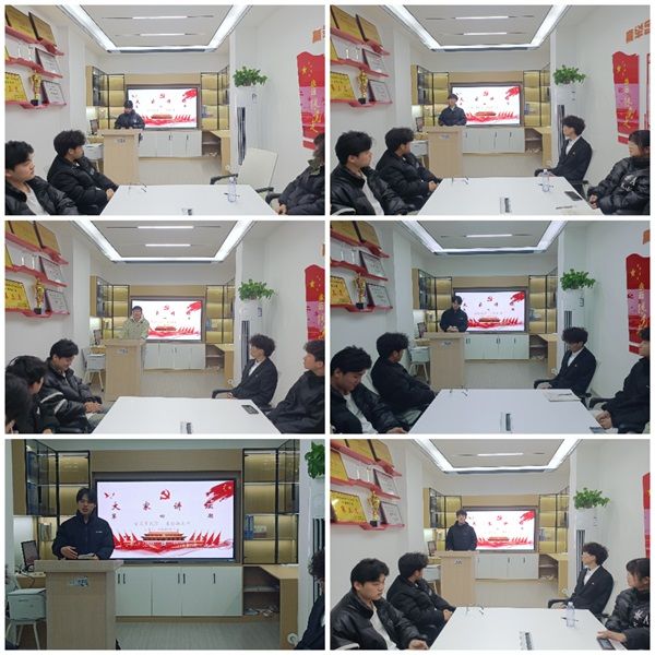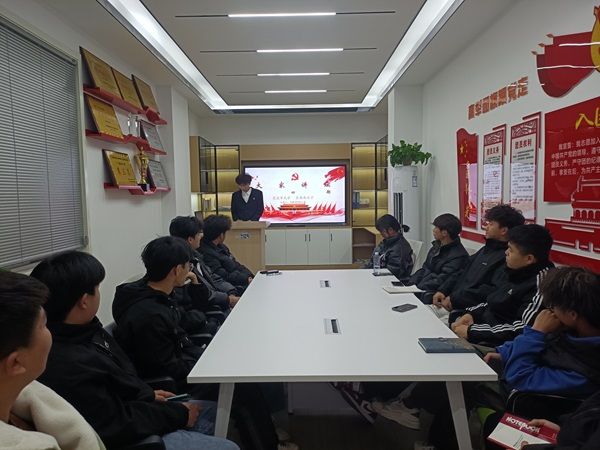 此次活动的主讲人是23数控2班团支书王磊。他主讲的内容为《贯彻民主集中制,创新和改进领导方式》,主要从党的光辉荣耀史谈到中华人民共和国成立的百年目标,中国在世界中昂扬的姿态,不能脱离党对人民的领导,要摆脱固步自封的原有思想,坚定创新和改进领导方式。在对原文进行简要阐述后,王磊同学也强调“我们在开展团学工作时,也要坚持党建引领团建的工作思想,贯彻民主集中制,要不断创新工作方法,改进工作方式,坚定听党话、跟党走的决心。”