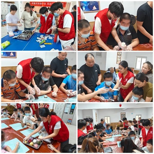 本次志愿活动主要以做月饼的互动形式开展。在志愿者的指导下,星星家园的孩子们通过志愿者们提前布置好的工具和制作材料,纷纷自己动手,从揉面、包馅到压模成,亲手制作出一个个形态各异、充满创意的月饼,体验着传统节日的乐趣与魅力。