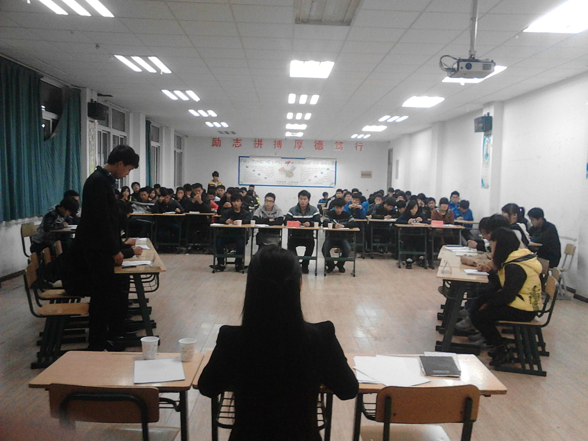 2013年11月24日晚7点,5403教室内热闹非凡,由机电工程系学习部主办的辩论赛在此举行。参与比赛的是我系13级学生,本次比赛特邀我系学生会副主席王雨、学生会新闻宣传部部长朱红波、女生部部长王欣及上届优秀辩手陆华龙担任评委。