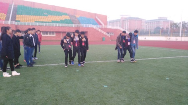 此次活动以独轮车游戏,三人四足等趣味游戏的形式展开。在独轮车游戏中,同学们深切体会到了合作的重要性,明白只有彼此之间真诚的合作才能走的更远。经过小小的热身,在三人四足游戏中,同学们的默契度再次得到了极大的提升。各组一边统一口号,一边不断调整着。每个人都融入了自己所在的小组。正是有了同学们的默契配合和团结一致的精神,才使这个小团体走的更稳,更快,更远。随着活动的进行,同学们一改往日的“宅男宅女”形象,使得游戏场面十分热闹,激烈。尽情享受着运动带来的快乐。