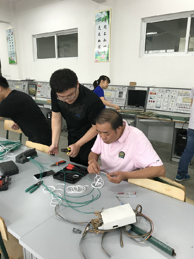 我系综合模拟实训室始建于2001年,随着实训设备逐渐老化和工业控制技术的更新换代,该实训室已不能满足我系PLC实训课程的教学需求,在今年申报新建PLC实训设备再次流标的情况下,为了不影响日常教学正常开展,在机电工程系主任杨思国的支持下,各教研室主任积极响应,利用周末休息时间,不计报酬,自带工具来到实训室,从钻孔、磨导轨圆角、打线号、接线到安装计算机和PLC 、安装调试软件全部由老师带领学生自主完成。整个改建过程中严格遵守工业技术规范,发扬工匠精神,高标准严要求完成每一个技术环节,改建效果完全符合教学需求。
