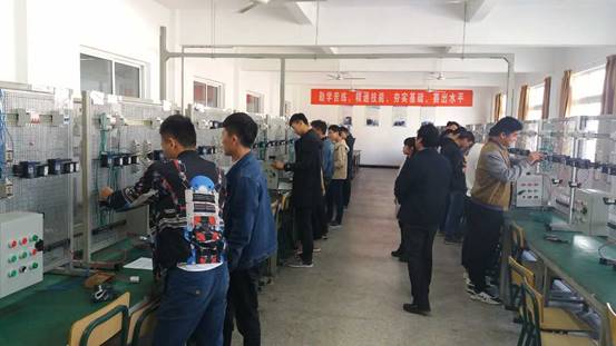 本次大赛从8点正式开始到11点结束,历时3个小时。参赛选手必须依据考场提供的控制要求,在规定时间内完成线路的安装和调试。每组选手们都分工合作,有的拨线有的安装,有的查故障,大家忙的不亦乐乎。评委老师们在比赛过程中认真观察操作步骤,严格按照评分要求细化分数等级,最后评委们根据选手的线路完成质量和时间行综合评定,评出了2组一等奖,3组二等奖和5组三等奖。