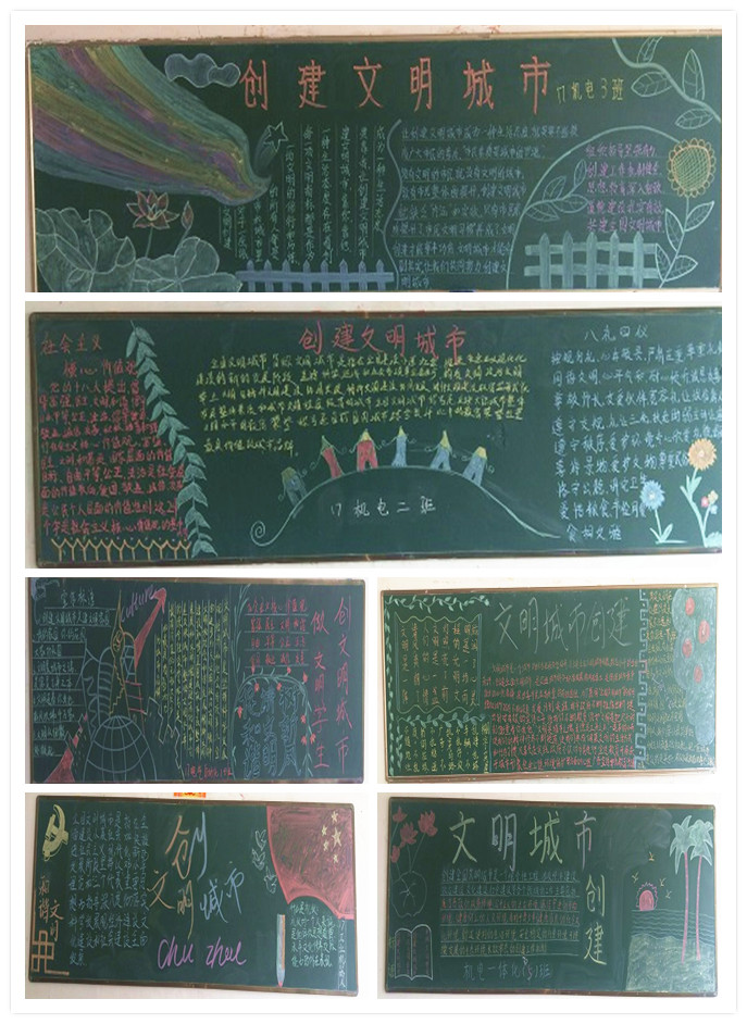 为我市创建全国文明城市,改善我系学生的不文明行为,近日,机电系团总支组织17级团支部利用班级黑板报,以“创建文明城市”为主题开展主题宣传活动。