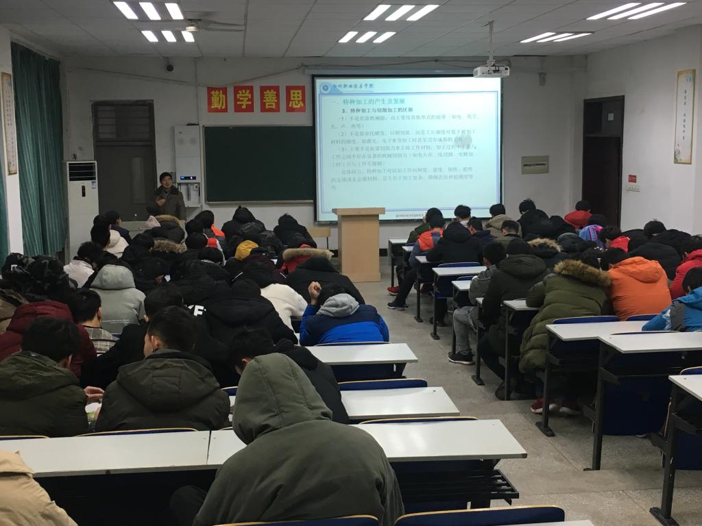 2019年1月10日,机电系杨思国主任在5102多媒体教室举办学术讲座,参加的师生近200人。讲座的题目是:特种加工技术。主要内容是包括特种加工技术产生与发展、电火花加工、电化学加工等几个方面。对机电专业的学生而言,讲座内容拓展和丰富了他们的知识面。