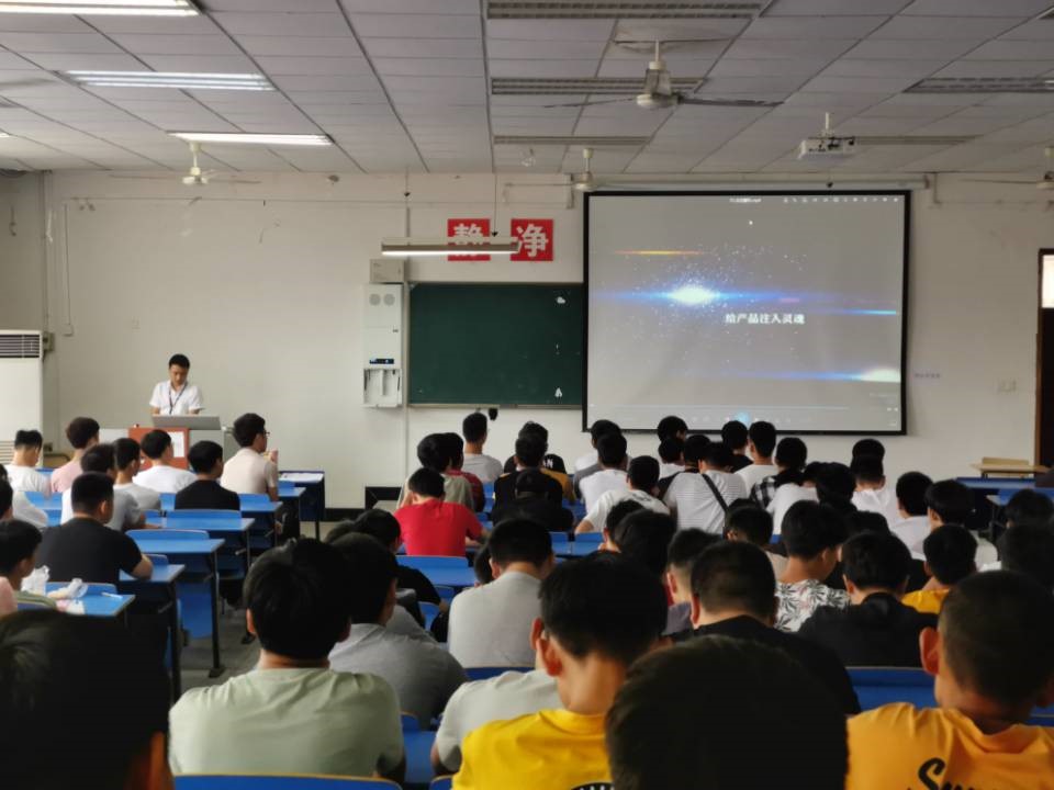 参观前,惠科公司在学校组织了企业宣讲会,培训科刘赛赛科长向同学介绍了惠科公司的企业发展历程和企业生产基本情况,惠科股份有限公司是一家专业从事视讯类消费电子产品研发、生产、销售的高新技术集团化股份公司。2017年8月1日,惠科股份有限公司与滁州市人民政府、滁州市同创建设投资有限公司正式签约,滁州惠科光电科技有限公司第8.6代薄膜晶体管液晶显示器项目正式启动。项目总投资约230亿元人民币,主要生产大尺寸超高清显示面板。其HKC TV液晶面板出货量跻身全球前六名,稳居国内第三名。