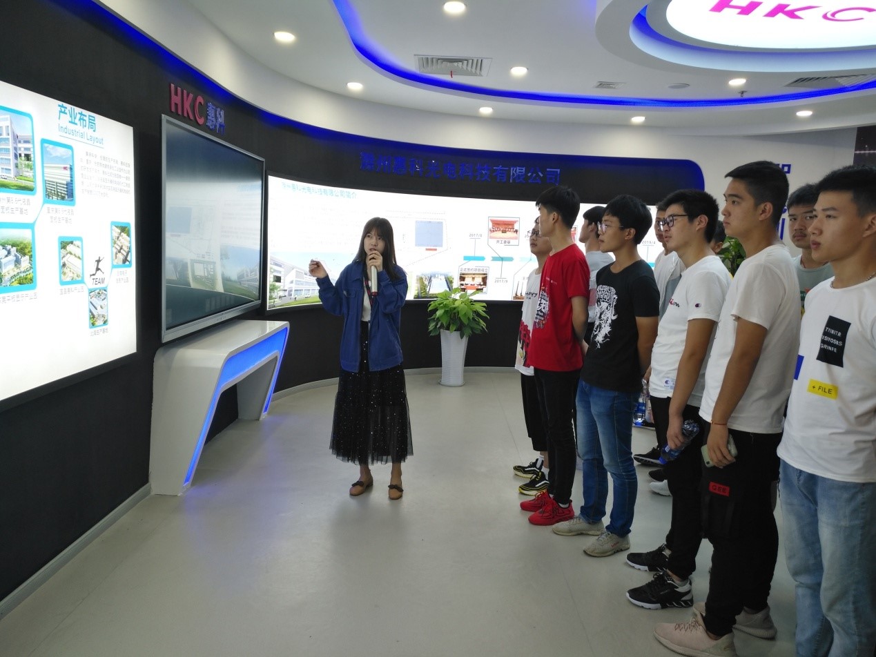 同学们参观了惠科公司的科技馆、食堂、商业街、宿舍等地方,在科技馆,讲解人员地介绍了惠科股份有限公司的概况、发展历史、主要产品与业绩,使学生们切身感受到高新科技对生产力的巨大推动作用。