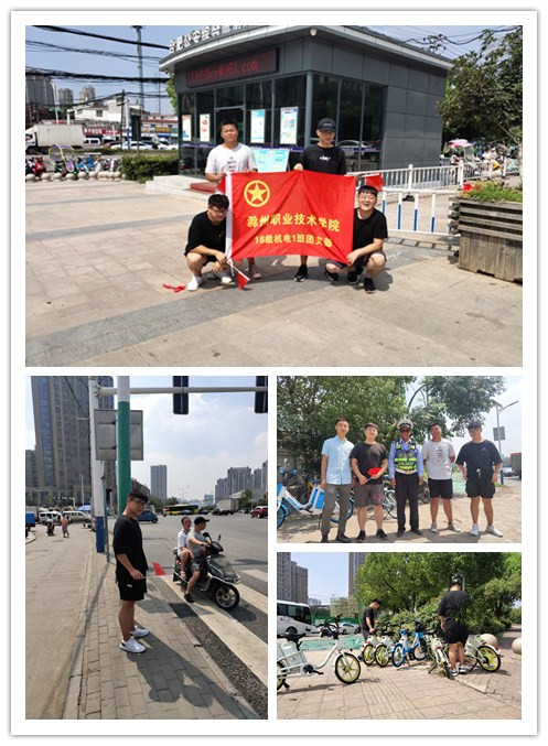 8月21日,18机电(1)班暑期社会实践小分队在合肥市庐阳区明发广场开展“共享单车,共享文明”为主题的实践活动,他们对各类停放不当的单车进行集中规整,并对不文明现象进行劝导。通过活动提升了他们的社会责任感,努力成为有知识,有素质,有道德的新时代大学生。