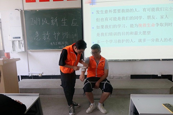 为全面普及红十字会应急救护知识,进一步提高学生自救互救的能力,9月13日上午,电气工程学院团总支在5102、5103教室面向19级新生开展应急救护培训,由我院邓广周、王玉杰、郑思凡、刘梦晴四名团学干主持和实操。