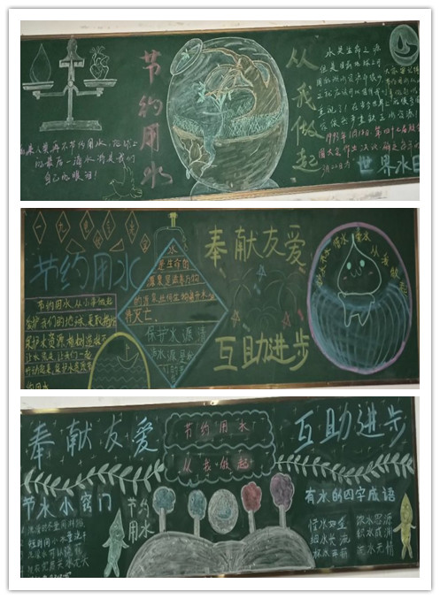 为弘扬节俭美德,珍惜水资源,近日,电气工程学院19级各班出制了一期以“节约用水”为主题的黑板报,加强同学们节约用水保护水资源的意识。