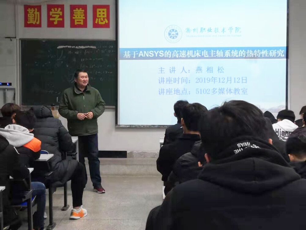 2019年12月12日下午,电气工程学院举办了题为“基于ANSYS的高速机床电主轴系统的热态特性研究”学术讲座,地点为5102多媒体教室,主讲人为电气工程学院副院长燕相松,讲座主要分为三个方面的内容:高速电主轴的结构及冷却润滑系统;高速电主轴的传热机制及其热特性的有限元分析与研究和总结与展望。