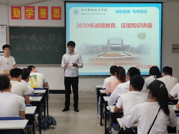 诚实守信是中华民族的传统美德,是做人之本,立德之源,是大学生道德规范的基本要求。为大力推进大学生诚信教育,6月17日下午电气工程学院在5102教室开展”诚信教育,征信知识“主题讲座,我院学生会主席刘立康主持本次活动,18级部分同学参加。