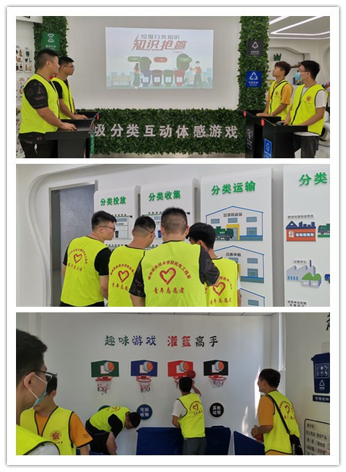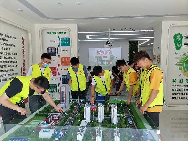 体验中心的工作人员通过垃圾分类流程区沙盘向实践队的成员们模拟还原了现实生活中垃圾的种类、收集、运输、处置方式以及垃圾不分类对环境造成的危害。实践队的成员们接着参观了垃圾变废为宝的作品,并进行了垃圾分类知识抢答竞赛,对垃圾分类有了进一步的认识,绿色生活理念也深入每一位学生的心中。