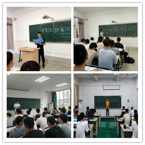 通过召开班会拓展了同学对宪法的认识,教育同学们自觉崇尚宪法、学习宪法、遵守宪法、维护宪法、运用宪法,进一步强化“四个意识”,坚定“四个自信”,推进法治班级建设营造良好氛围。同时,我院学生会举办了"学宪法,讲宪法”知识竞赛和演讲比赛,并推荐两名同学参加学校相关比赛。