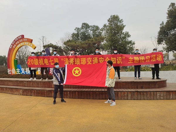 20机电7班团支部开展“清秀琅琊交通安全知识”主题团日活动。支部成员前往花博园,向市民宣传交通安全知识,提示大家遵守交通规则、不闯红灯、驾车系安全带、骑电动车不逆行等,一定要文明出行、安全出行,共同建设文明城市。