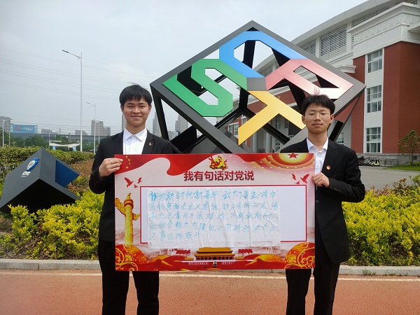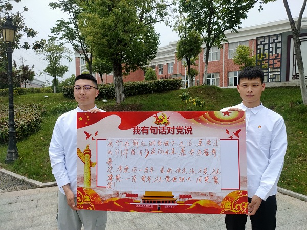 作为新时代中国青年,我们要热爱伟大祖国,要担当时代大任,要勇于砥砺奋斗,用‘中国梦’激扬‘青春梦’,用坚定的信仰和奋斗的青春为中国共产党的百岁生日献礼!
