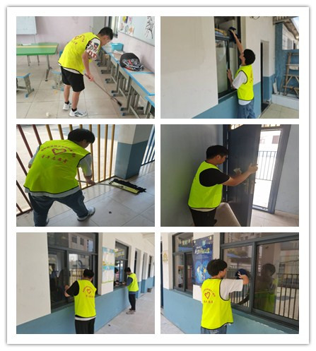 在星星家园工作人员的安排下,我院志愿者们对星星家园孩子们的学习、生活场所进行卫生清理。他们整理桌椅、清理杂物、擦拭窗户等,为“小星星”们打造一个干净、明亮、舒适的环境,用自己的爱点亮“星”空,让“星星”不再孤单。