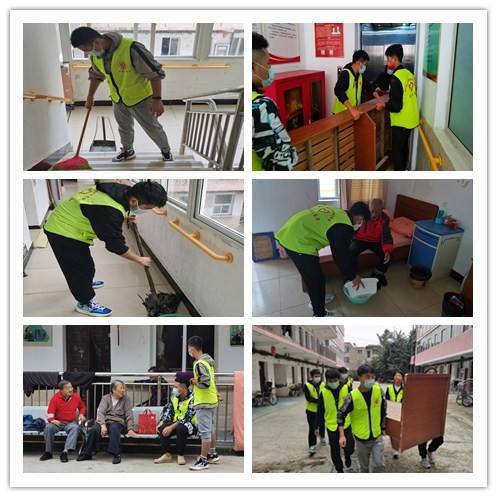 我院志愿者为爷爷奶奶们打扫卫生、搬家具等,为老人们营造良好的生活环境;和爷爷奶奶们坐在长椅上聊天说家常,让老人们感受到浓浓的关爱之情。院子里,我院青年志愿者的身影随处可见,他们用实际行动缓解了老人的孤独感,同时自己也深刻感受到重阳节的传统意义。
