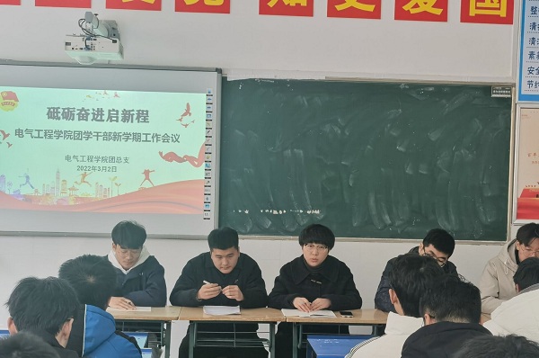 为继续提升团学干部的思想认知和工作能力,发挥团学干部在服务学生中的作用,3月2日中午11:40,电气工程学院团学干部新学期工作会议在致新楼5205教室召开。我院团总支书记张文老师主持会议,辅导员臧铭老师及全体团学干部参会。