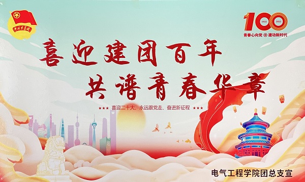 为庆祝中国共青团建团100周年,引领团学青年自觉坚定听党话、跟党走的青春步伐,赓续百年薪火,勇担青春使命,电气工程学院团总支充分利用宣传阵地,以海报、黑板报的形式进行庆祝“建团百年”主题宣传。