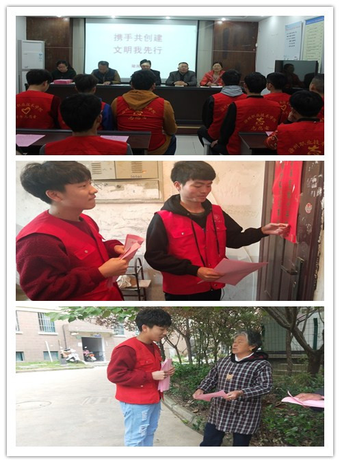 为争创全国文明城市,共创美好和谐家园,机电系“醉美亭城”志愿者服务队于4月14号上午八点来到陡岗社区,参加了其开展的创建文明城市活动。