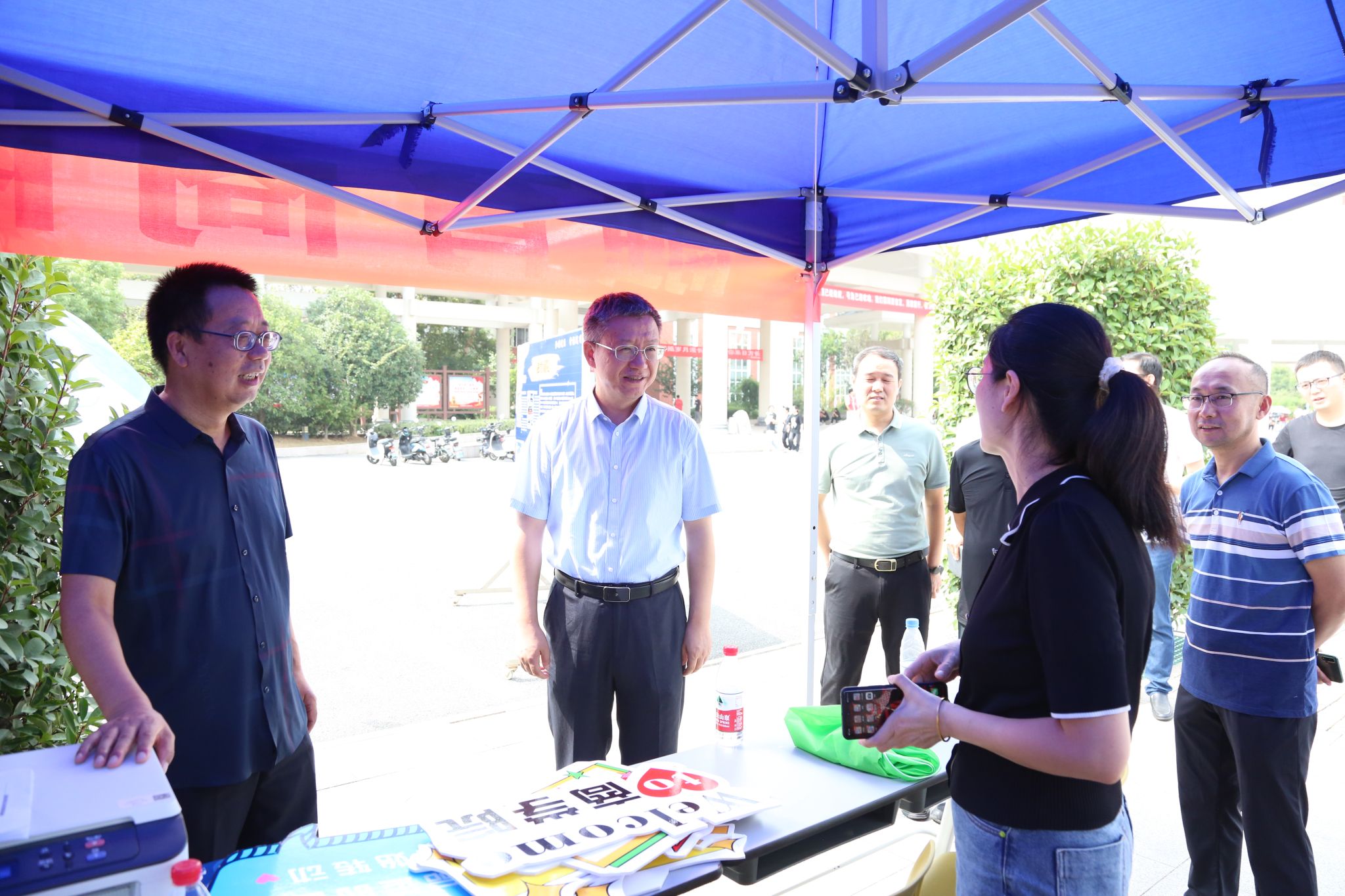 校党委书记曹付忠一行亲临迎新一线指导工作及慰问在现场的教职工和志愿者。曹付忠在现场了解了商学院的报到流程以及新生的报到情况,组织人事处李超处长也到我院报到点进行工作指导,并慰问了在一线提供志愿服务的同学们。