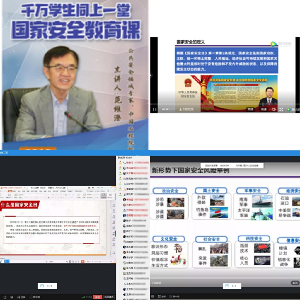 17、18级、19级各班辅导员积极组织安排线上班会,通过PPT讲解、视频观看、网络连线开会等方式对各班同学们开展了国家安全教育的知识普及。同学们从中了解到“国家安全教育日”的来历及背景、什么是国家安全、维护国家安全的法律基石、维护国家安全有哪些权利等许多平时没有了解接触到的知识,大家都受益匪浅,全院学子更好地了解了国家安全的重要性。同学们听完后,认为国家安全离我们并不遥远,常常就体现在我们身边的一些小事中,国家安全的法律法规深入课堂,深入人心。通过这次学习,让我们意识到,国家安全就是要从小事抓起、从点滴做起,才能构建维护国家安全的钢铁长城。大家指出此次班会丰富了自己的国家安全知识,宣传了国家安全观念,激发了同学们的爱国正能量与情怀。