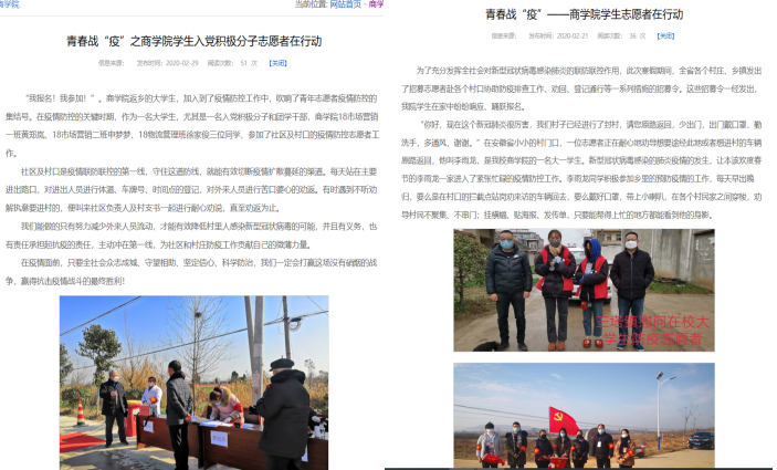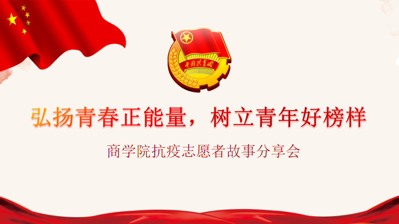 为了弘扬五四精神,激励和引领广大青年进一步传递青春力量。商学院团总支于5月3日下午五点在线召开“弘扬青春正能量,树立青年好榜样”抗疫志愿者事迹分享会,会议由我院团干林菁菁主持,我院郭杰、黄郑岚、李雨龙三位抗疫青年志愿者在本次分享会中与大家共同分享自己在抗疫一线的故事和感想。