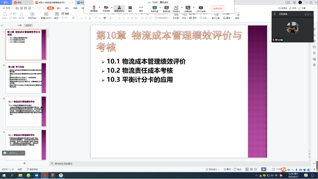 6月11-12日, 20级物流管理(社招班)学生于腾讯会议室集中开展线上教学授课,完成了《物流成本管理》《仓储与配送管理》《国际货运代理》三门课程的第四次线上直播学习。