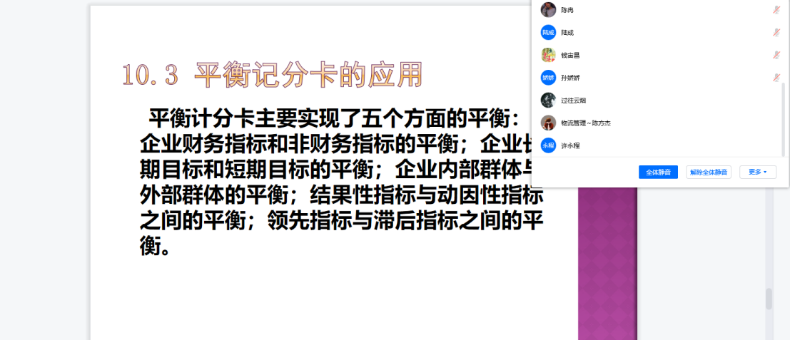 本次线上教学课堂采用腾讯会议在线授课,配合超星学习通考察到课情况。整个课堂时间控制良好,节奏紧凑,整体课堂秩序良好,教师教学内容准备充分,学生参与热情度较高。三位教师结合期末复习情况,引导学生做好重难点复习,积极迎考。