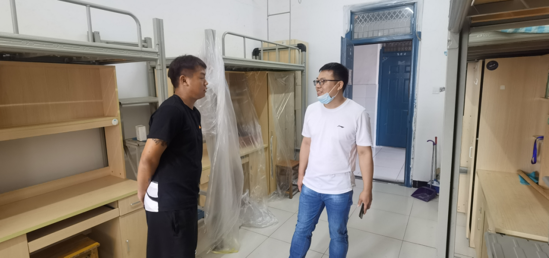 在学生宿舍,程震仔细询问了同学们在校期间的生活和学习情况,以及是否存在需要学院帮助解决的困难。同时,他也叮嘱大家在宿舍进行线上学习的时候一定不能松懈,要高标准、严要求地对待所学的每一堂课。